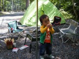 いままで、雨が降らず水不足が心配されましたが、夕べから休まず雨が降って、初めて王冠にキャンプに来てくれた皆さんにとっては残念でしたが、楽しそうな笑い声が響いていました。シカが出てきたり、リスが出てきたりと大自然のキャンプを楽しみました。