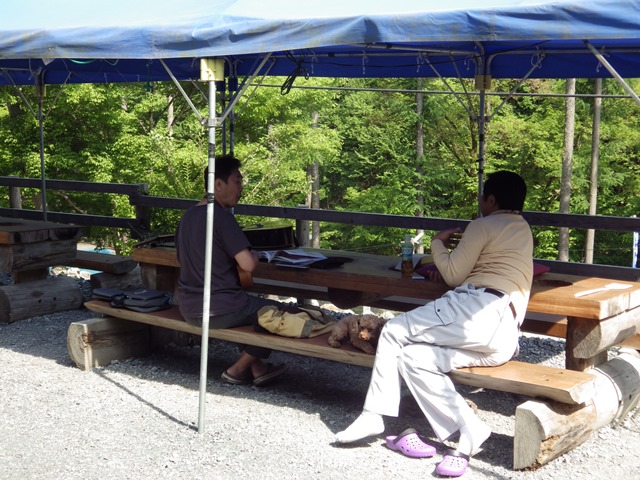 大人と子供と愛犬カレンは週末の一時、王冠の緑の中でゆったりとした時間を過ごしました。アオさんは歌いまくり、ソルジーは渓流にとやりたいことをやって・・・。 ああやっぱり食事は自然の中が一番です。。
